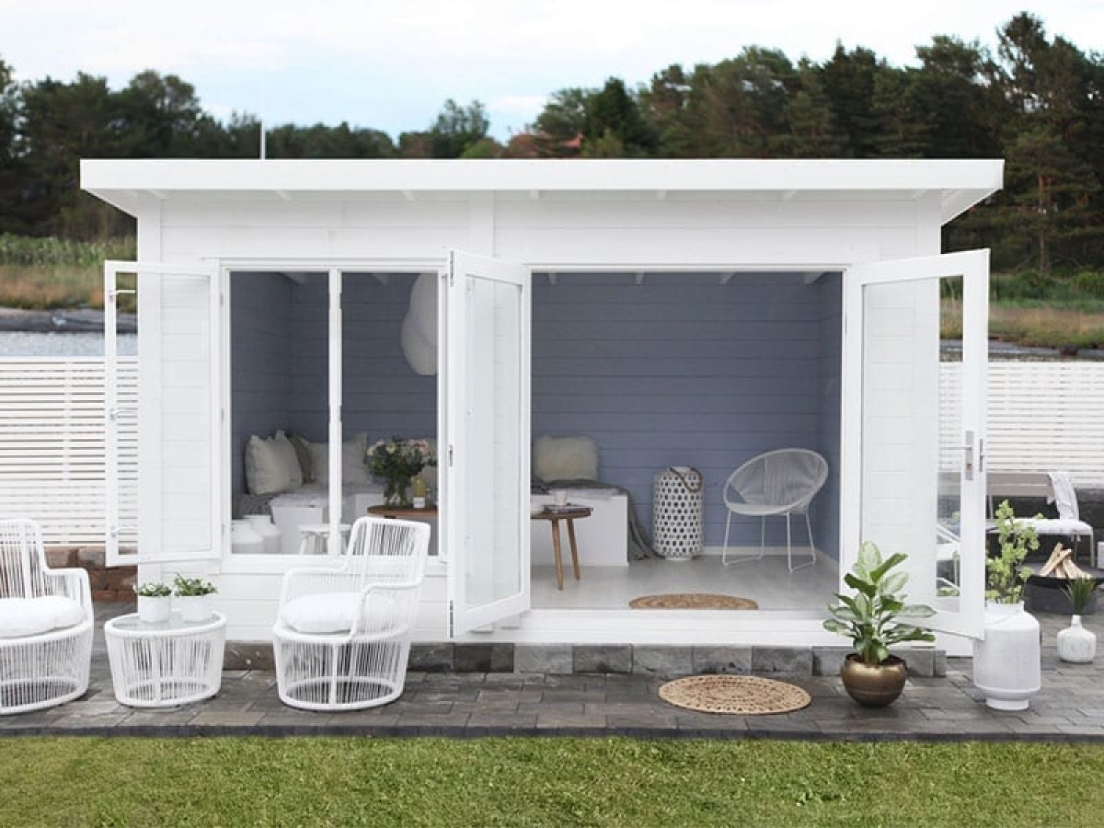 Our of our most popular studio style log cabin, the Ex Exhibition Lillevilla 340 has a large double door set and a large double window set, allowing in the light from outside, and large double locking doors. With its modern mono pitch roof covered with an EDPM (Ethylene-Propylene-Diene Monomer) the roof covering has a life expectancy of at least 20 years!